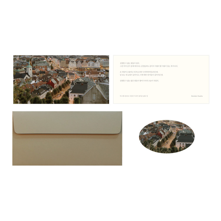 엽서 2장, 봉투 1장, 스티커 1장이 세트인 상품입니다.
