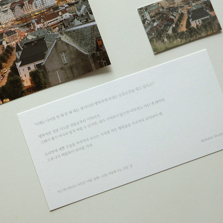 그날의 풍경과 감상이 가로로 긴 엽서에 프린트되어 있습니다.