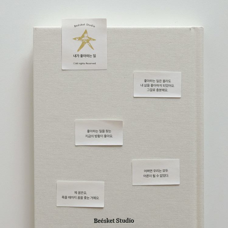 그 이야기들 속에서 몇 가지 문장을 발췌하여 스티커로 만들었습니다.