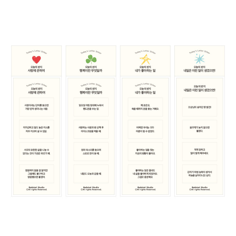 문장 스티커엔 4개의 문장이 적혀 있습니다.