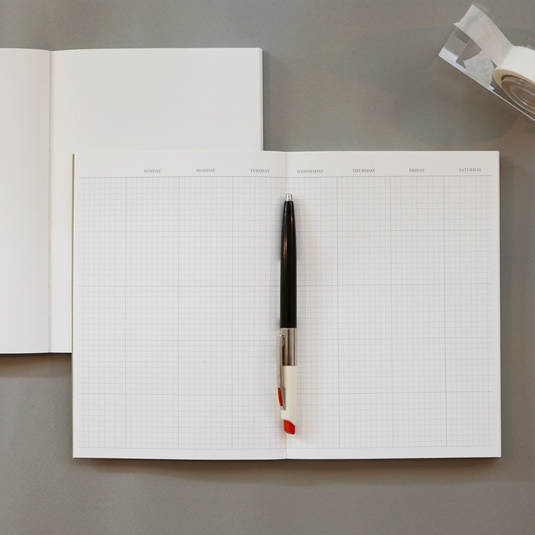 -만년 다이어리 형식으로, 월간 13페이지와 모눈 페이지로 구성되었습니다.